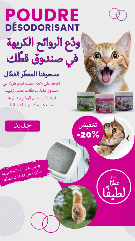 للطلب أضف معلوماتك في الأسفل 👇 اختر الولاية...01 Adrar - أدرار02 Chlef - الشلف03 Laghouat - الأغواط04 Oum El Bouaghi - أم البواقي05 Batna - باتنة06 Béjaïa - بجاية07 Biskra - بسكرة08 Bechar - بشار09 Blida - البليدة10 Bouira - البويرة11 Tamanrasset - تمنراست 12 Tébessa - تبسة 13 Tlemcene - تلمسان14 Tiaret - تيارت15 Tizi Ouzou - تيزي وزو16 Alger - الجزائر17 Djelfa - الجلفة18 Jijel - جيجل19 Sétif - سطيف20 Saïda - سعيدة21 Skikda - سكيكدة22 Sidi Bel Abbès - سيدي بلعباس23 Annaba - عنابة24 Guelma - قالمة25 Constantine - قسنطينة26 Médéa - المدية27 Mostaganem - مستغانم28 MSila - مسيلة29 Mascara - معسكر30 Ouargla - ورقلة31 Oran - وهران32 El Bayadh - البيض33 Illizi - إليزي 34 Bordj Bou Arreridj - برج بوعريريج35 Boumerdès - بومرداس36 El Tarf - الطارف37 Tindouf - تندوف38 Tissemsilt - تيسمسيلت39 Eloued - الوادي40 Khenchela - خنشلة41 Souk Ahras - سوق أهراس42 Tipaza - تيبازة43 Mila - ميلة44 Aïn Defla - عين الدفلى45 Naâma - النعامة46 Aïn Témouchent - عين تموشنت47 Ghardaïa - غرداية48 Relizane- غليزان49 Timimoun - تيميمون50 Bordj Baji Mokhtar - برج باجي مختار51 Ouled Djellal - أولاد جلال52 Béni Abbès - بني عباس53 Aïn Salah - عين صالح54 In Guezzam - عين قزام55 Touggourt - تقرت56 Djanet - جانت57 El MGhair - المغير58 El Menia - المنيعة اختر البلدية... - + اطلب الآن ملخص الطلب Packs 4 Poudre désodorisant x1 د.ج1,250.00 سعر الشحن - السعر الإجمالي د.ج1,250.00